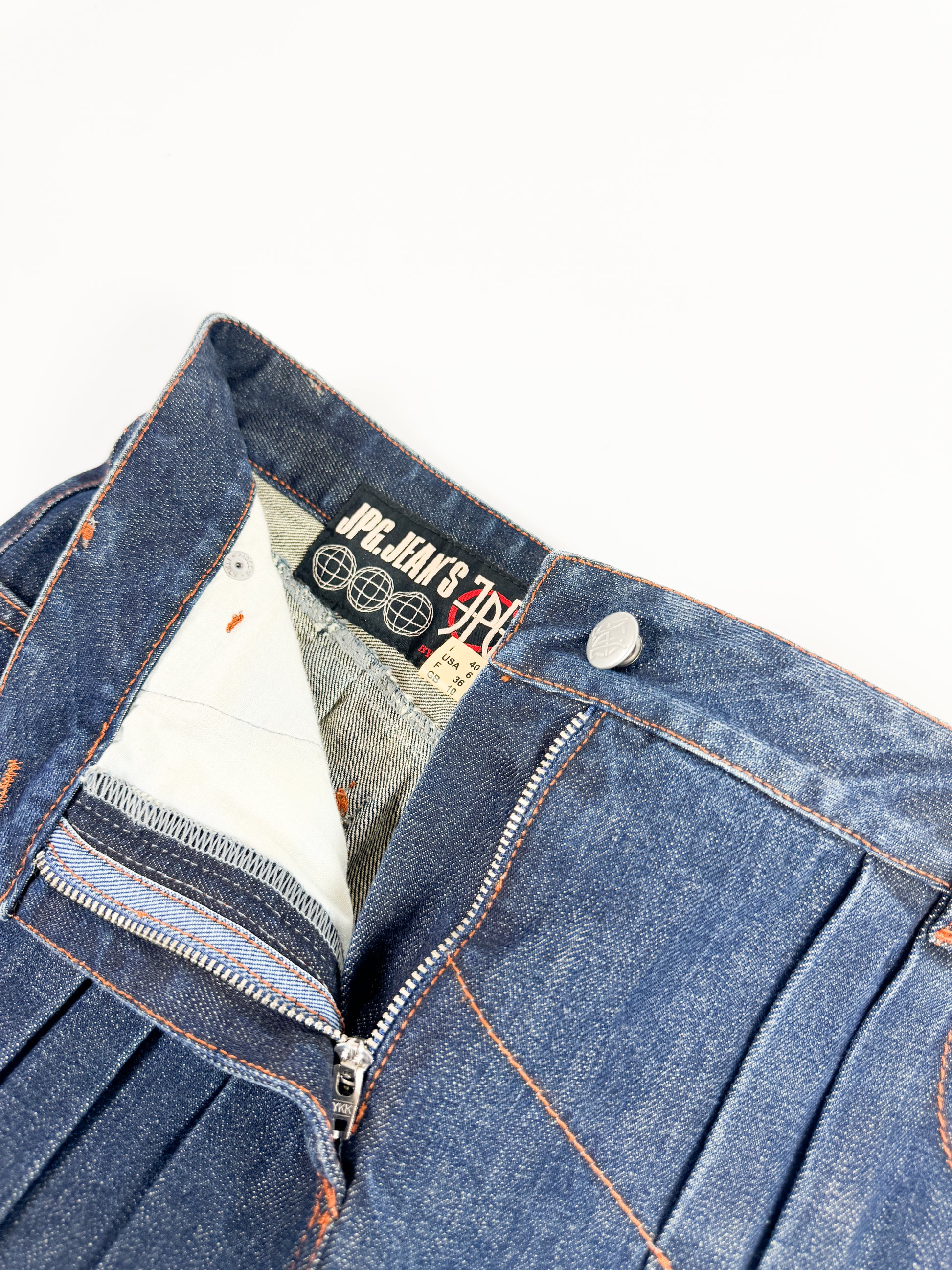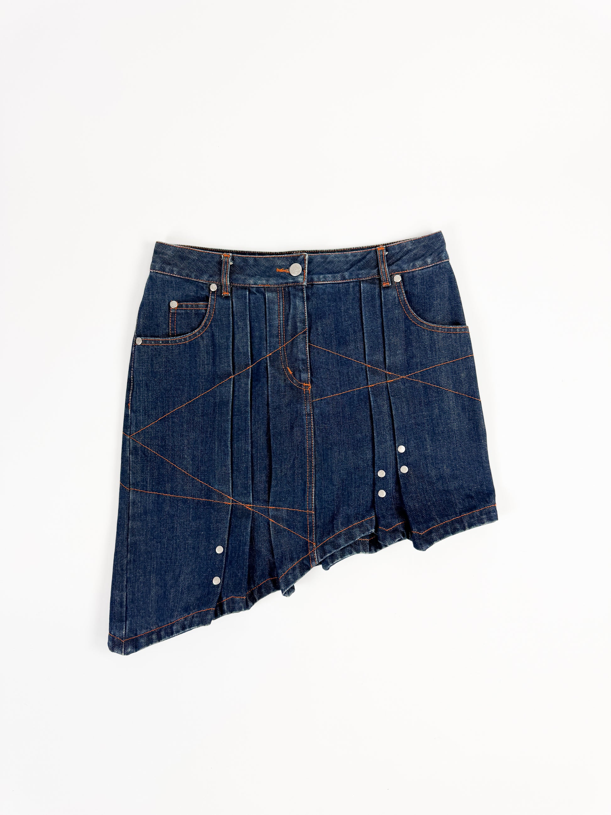 Jean Paul Gaultier Asymmetrical Pleat Denim Skirt FW2002