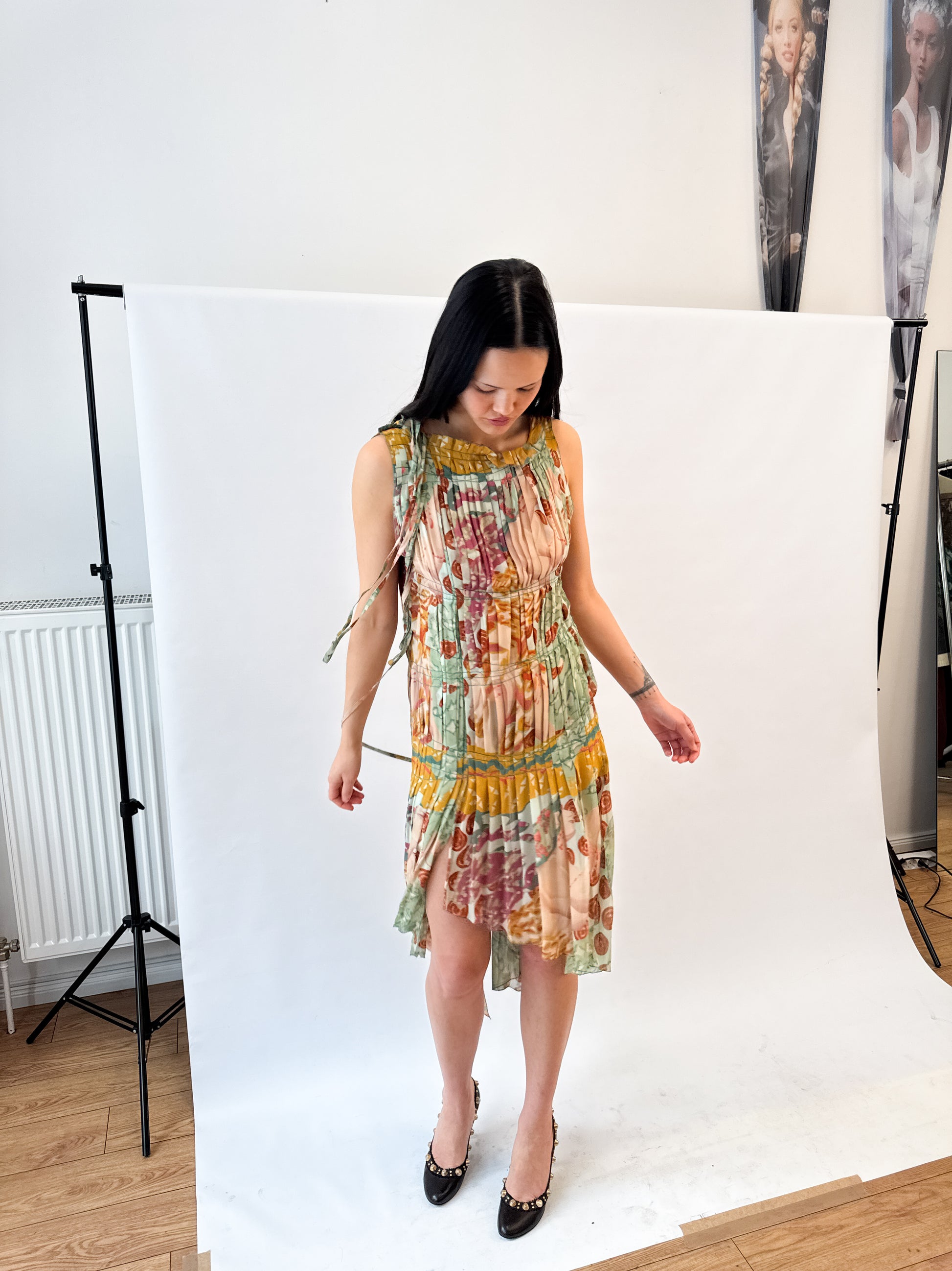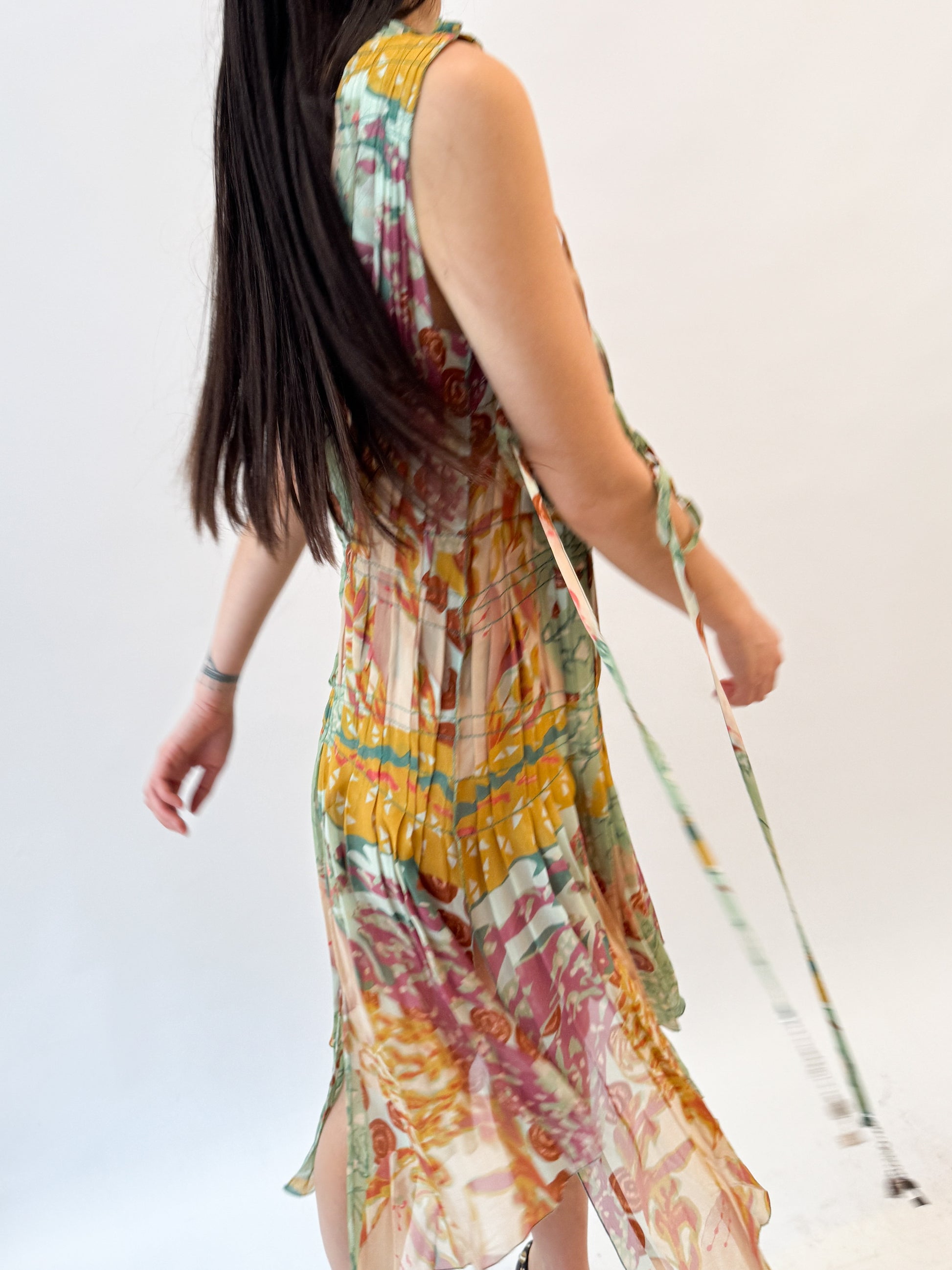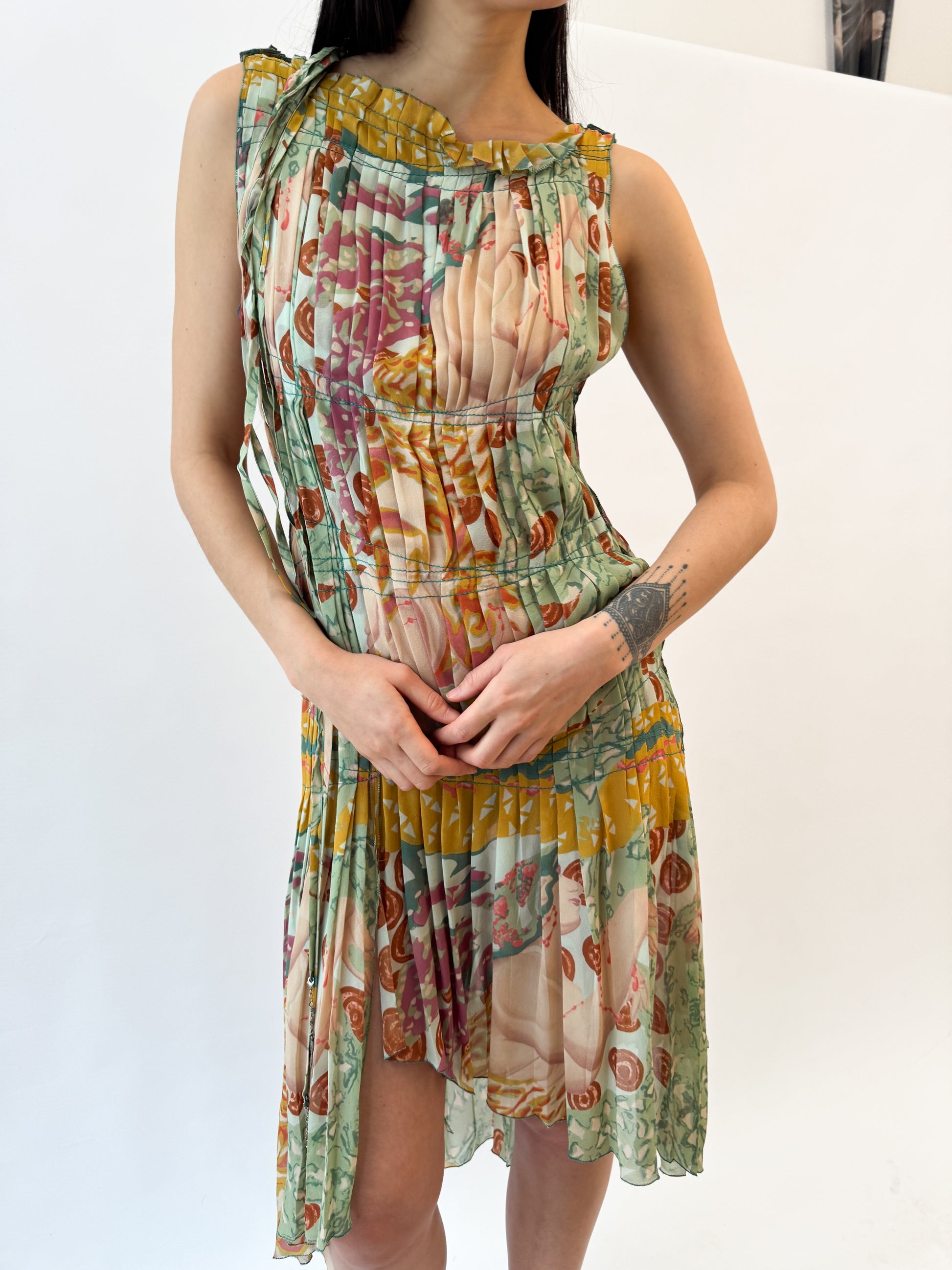 Jean Paul Gaultier Pleated Colourful Silk Dress FW2002